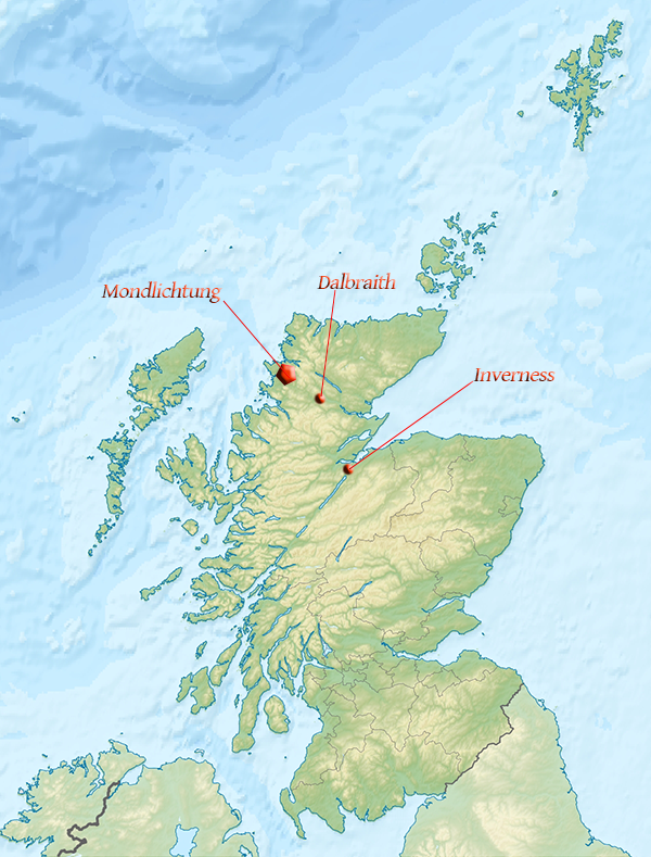 Hoch oben in den schottischen Highlands am wunderschönen Loch Adair befindet sich die Mondlichtung. Verborgen für menschliche Augen, zu tief in der Wildniss verfangen als dass diese hier Fuß fassen würden. Fernab von Wegen und Trampelpfaden durch dichten Wald oder hohe Berge sind der Loch Adair und die Mondlichtung zu erreichen weshalb sich auch nur selten Garou wirklich hier her verlaufen und ihren Weg meist nur finden wenn sie ihn bereits kennen oder jemanden antreffen der ihnen eben jenen weisen kann.